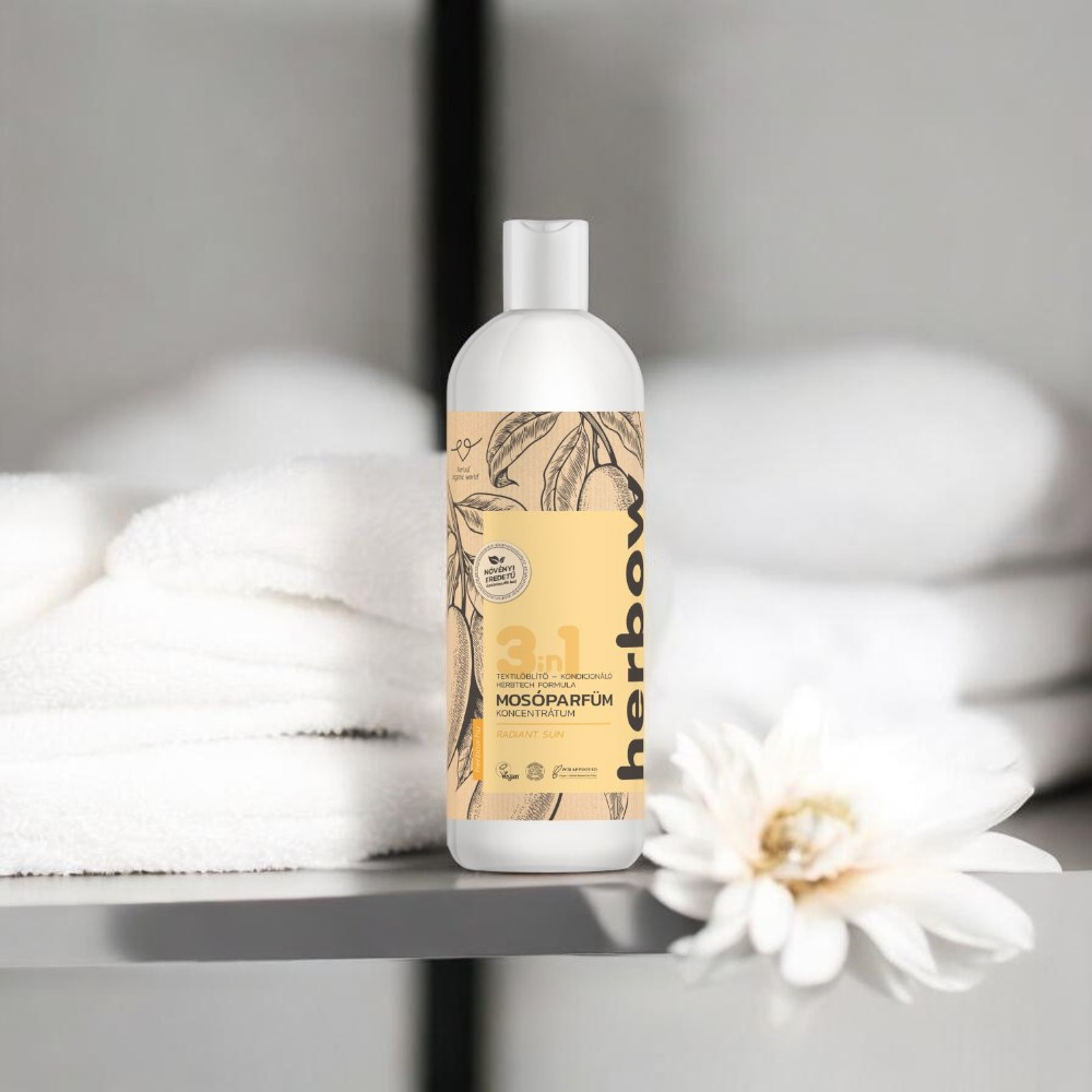 Három funkció egy lépésben   A Herbow 3in1 Öblítő és kondicionáló mosóparfüm koncentrátum Ragyogó nap  1000 ml egyszerre öblít, kondicionál és illatosít, így leegyszerűsíti a mosási folyamatot.