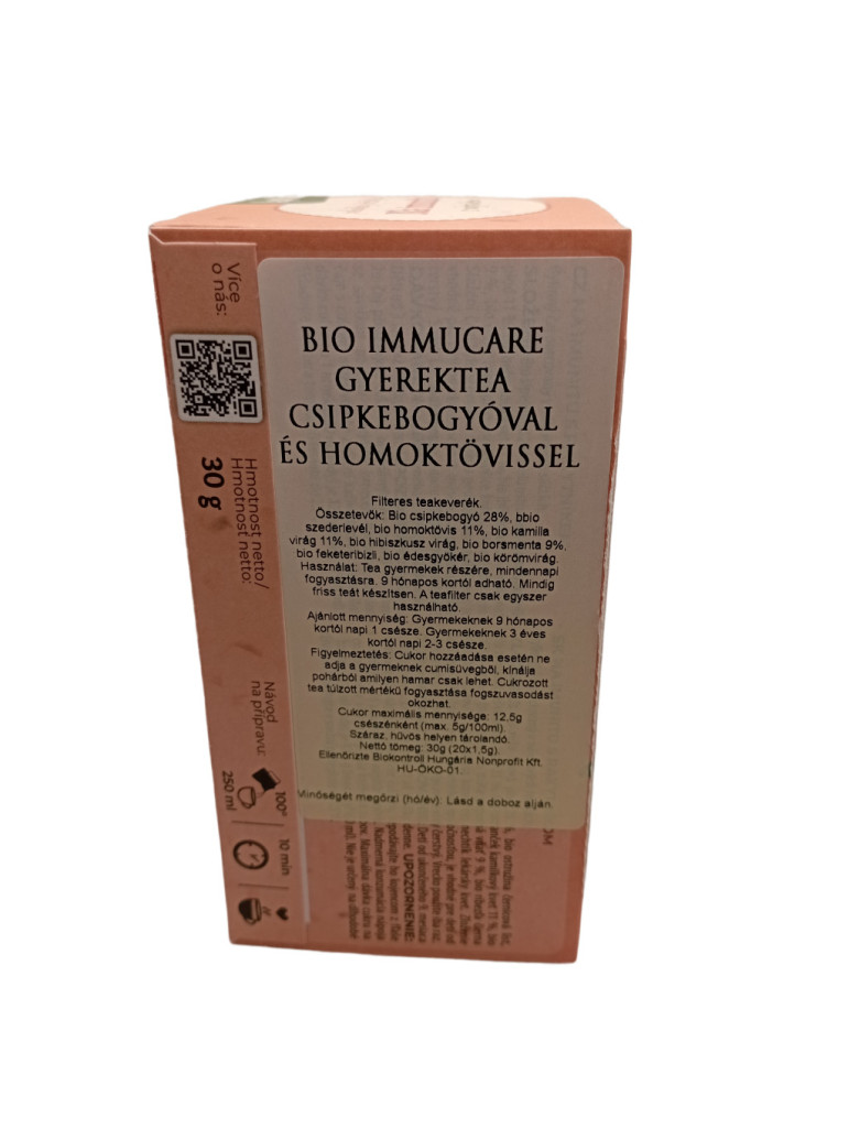 Gyengéd immunerősítés természetes bio összetevőkkel – csipkebogyóval és homoktövissel támogatja a kisgyermekek természetes védekezőképességét.Finoman gyümölcsös, gyerekbarát íz – könnyen szerethető, enyhén savanykás tea a mindennapokhoz.Teljesen bio és adalékmentes – biztonságos, tiszta választás a tudatos, vegyszermentes ecoháztartás számára.