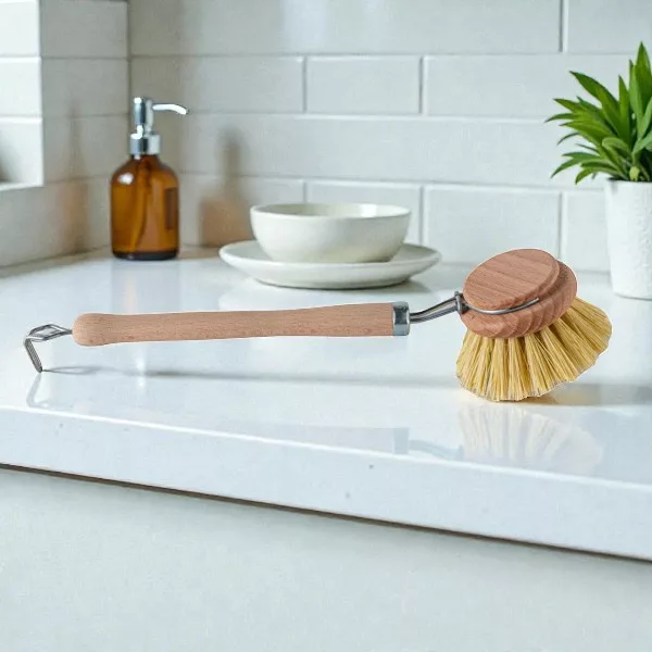 A fej könnyen cserélhető. A fa antibakteriális hatású, és tökéletes mosogatáshoz. A növényi sörték robusztusak, szilárdak és tartósak.
