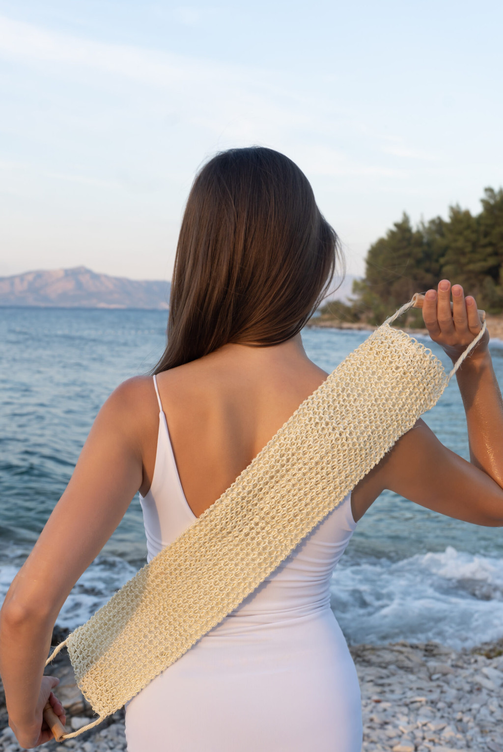 A Croll&Denecke szizál és pamut hátmosó szalag a bőrápolás új dimenzióját kínálja. Természetes szálakból készült, hatékonyan távolítja el az elhalt hámsejteket és fokozza a vérkeringést. Használata egyszerű, fogantyúinak köszönhetően könnyen elérheted vele a nehezen hozzáférhető helyeket is.