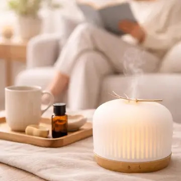 Emelje le az üveg búrát, és töltse fel a belső tartályt tiszta csapvízzel a jelzett maximum szintig. Adjon hozzá 3-6 cseppet kedvenc 100%-os tisztaságú illóolajából (pl. fenyőt a frissítéshez vagy levendulát a nyugodt alváshoz). Helyezze vissza a búrát, kapcsolja be, és élvezze, ahogy a nemes anyagok és a természetes illatok átalakítják otthona légkörét.